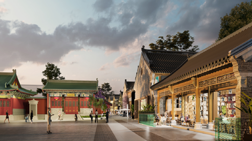 項目圍繞其毗鄰的文廟、城墻等文化遺存,處于較為幽靜的環(huán)境,整體業(yè)態(tài)定位偏于文化和雅致;項目以中原傳統(tǒng)建筑為設(shè)計基礎(chǔ),采用明清時期建筑風(fēng)格,將文廟、城垣與商業(yè)街區(qū)融為一體,增加街區(qū)的文化品位與底蘊。