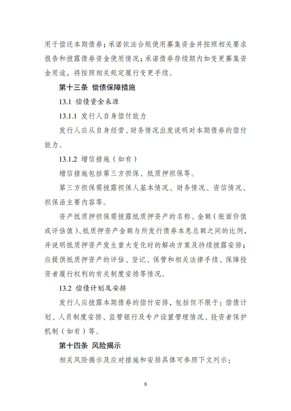 (二)發(fā)行人應(yīng)按照監(jiān)管部門和交易場所的規(guī)定,在存續(xù)期內(nèi)定期披露財務(wù)情況、經(jīng)營情況、募集資金使用情況、項目進展情況等相關(guān)信息。如存續(xù)期內(nèi)變更募集資金用途或發(fā)生其他對債券持有人權(quán)益有重大影響的事項,應(yīng)符合相關(guān)法律法規(guī)和政策要求,按照有關(guān)規(guī)定或約定履行程序,并及時公告。