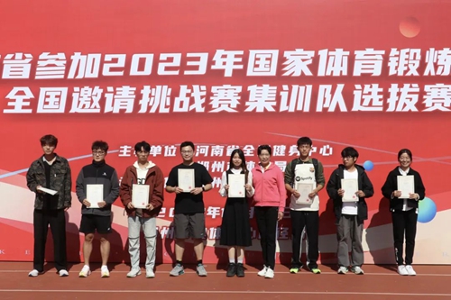 10月22日,河南省參加2023年國家體育鍛煉標(biāo)準(zhǔn)全國邀請?zhí)魬?zhàn)賽集訓(xùn)隊選拔賽在鄭州奧體中心西側(cè)田徑訓(xùn)練場火熱展開?,F(xiàn)場數(shù)百余運動員,通過30秒跳繩、男子1000米跑、女子800米跑、立定跳遠、繞桿跑、坐位體前屈等一系列的體能測試,在秋日暖陽中,以飽滿的熱情和能量,挑戰(zhàn)自我,刷新體能成績。