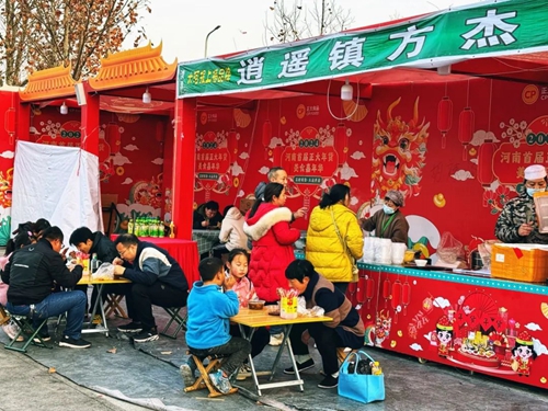 春節(jié)期間正常營業(yè),全天候不間斷熬煮香噴噴、熱騰騰的胡辣湯,使美食街這家攤位成功出圈,一碗湯一張餅,日銷量高達(dá)3000份,濃濃河南特色,滿足了眾多游客的心和胃。