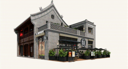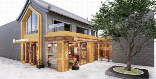 以COMMUNE幻師的門(mén)店設計為例——從效果圖可以看出,建筑外部以青灰色磚墻復刻商代建筑肌理,檐角神獸造型融入現代燈光設計,整體風(fēng)格充滿(mǎn)著(zhù)古樸與時(shí)尚。店內則以暖色調營(yíng)造松弛感,酒墻擺滿(mǎn)了來(lái)自全球的精釀。每當味蕾觸碰到精釀的麥香,窗外同時(shí)飄入來(lái)自3600年前夯土的氣息——在這里,顧客喝的不是單純的酒,而是歷史與現代的奇妙敘事。